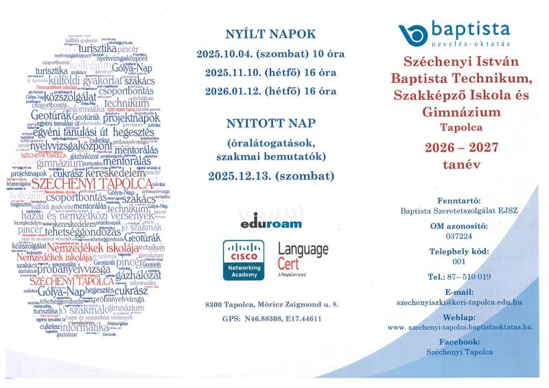 Iskolánk a 2026/27-es tanévre az alábbi képzéseket hirdeti: