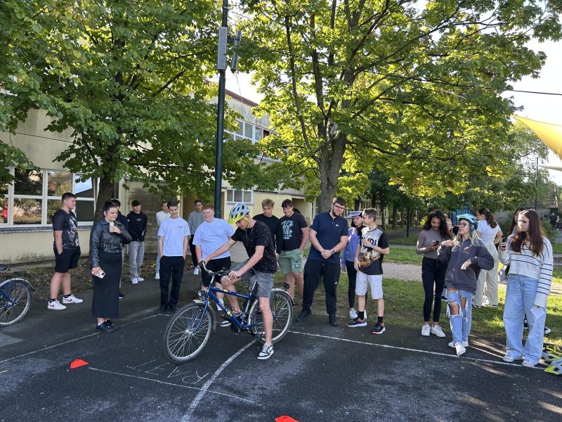 A második napon a kerékpáros ügyességi pálya került a középpontba, amely hatalmas sikert aratott. Természetesen itt is minden programban való részvételért gyűjtötték a pontokat, ráadásul az osztályfőnökök részvétele a bringapályán plusz pontot ért az osztályaiknak. Volt olyan lelkes pedagógus, aki az osztályáért magassarkúban teljesítette a pályát. A naphoz egy KRESZ-teszt is kapcsolódott, ahol a diákok közlekedési tudásukat mérhették össze.